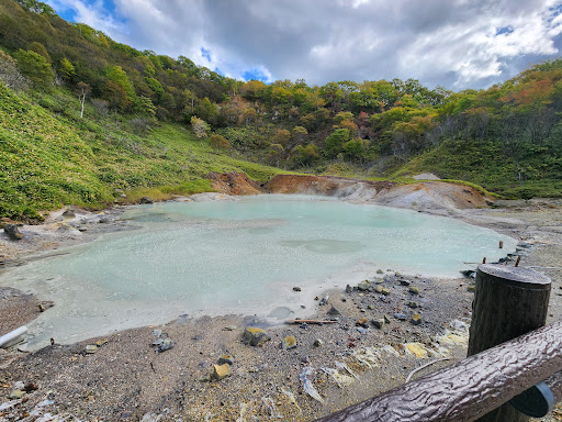Beautiful view. If you're in Nobiri Betsu, I highly recommend coming here to see this gorgeous lake filled with onsen. You can either drive here or walk/bike here. If you're walking, there's trail coming from the hell valley, I'd say it's about an hour walk. We didn't know so we ended up walking the whole way in Yugi (Japanese room ware) and sandals because we thought it'd be like 10 minute walk. If you do drive, unless you park on the street near here, it costs money to enter the parking lot. There are few spots you can park for free on the way here. It's usually busy, but if you're lucky, you can...