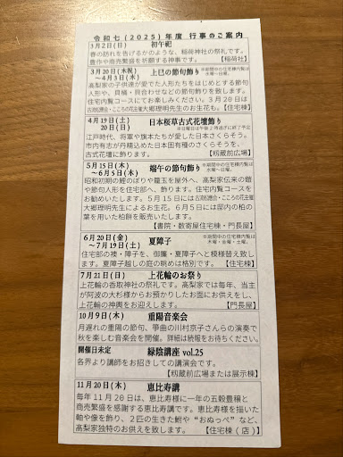 ガイドのかたに、住宅のつくりや庭園を案内していただきながら見てまわる内覧コースもありましたので、少しお時間を取れるときには、ぜひ利用されてみてはどうでしょうか。(通常期は金・土。節句期は水〜日。原則、事前予約。最後のお茶を含めて1時間くらい。)内覧の最後には、お茶菓子をいただきながらお庭をみて、贅沢な時間をすごさせていただきました。