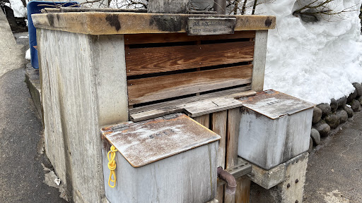 帰り際、外湯向かいに設置された温泉たまごを作る箱の前に料理人の方が実際に温泉たまごを作っていたのでお話を伺いました。 ここで温泉卵を作るなら10分程度が良いとのこと。ただ日によって温泉の温度が変わるので、どうしてもトロトロの温泉たまごを食べたいなら温度計を持ってくるしかない(笑)と教えてくれました。 ちなみに野沢温泉の雑貨屋やコンビニでは温泉たまご用のたまごと、箱に入れる網が売っています。作りたい人は要チェック。