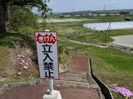 ※注意:公園は高台に位置しており、下の方に降りていける階段がありますが立入禁止になっています。階段下を覗き見てみると、階段を降りきった場所にも公園の跡地があり、すぐ横を農業用水路が通っていました。柵はしっかりした物が用意されているように見えますが一部に破損も見られ、大変危険です。子供連れの際は目を離すことなく、立入禁止の標識の奥に入っていか...