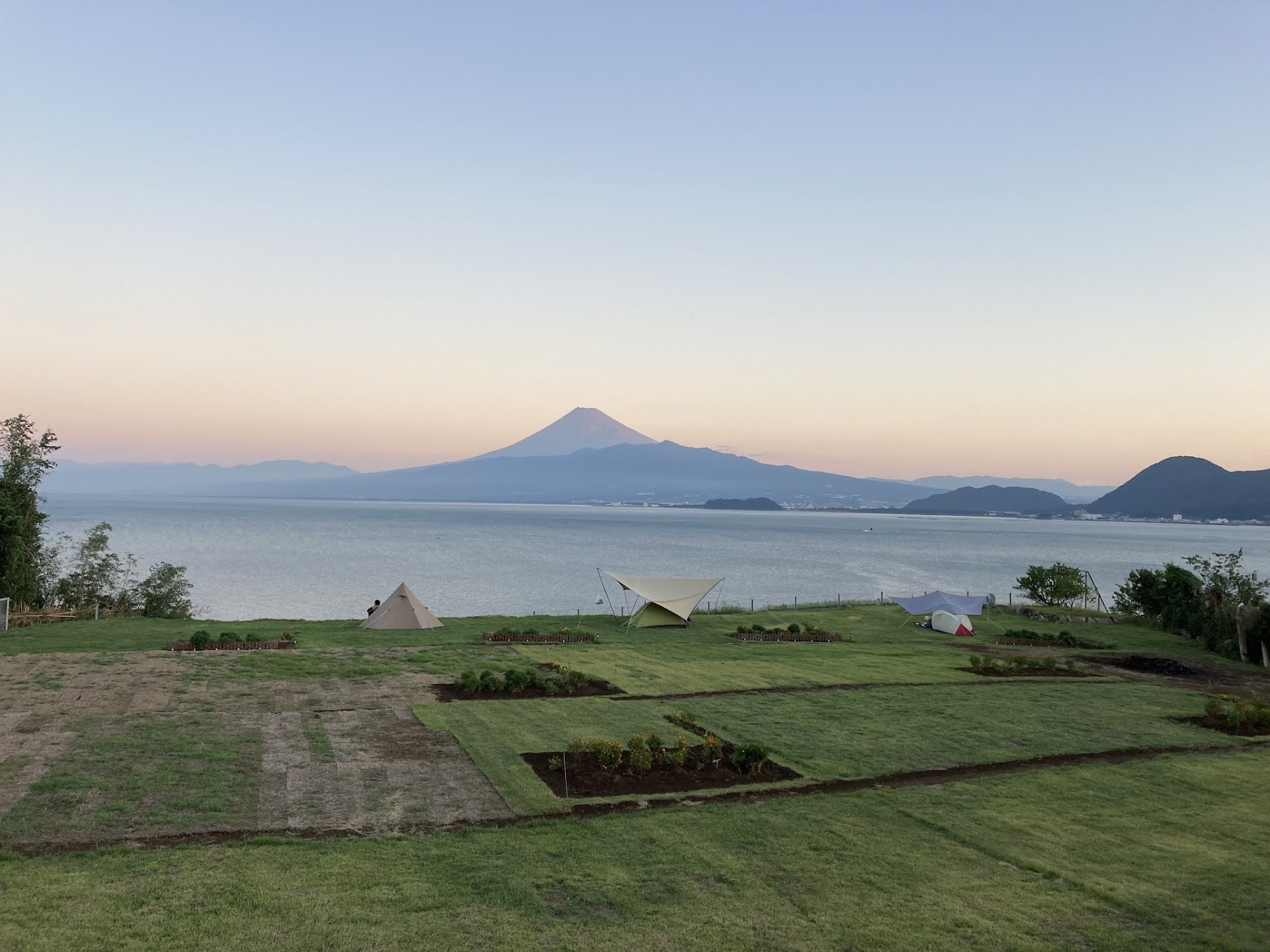 駿河湾越しの富士山と、海に沈む夕日、沼津の夜景を眺められる「絶景のキャンプ場」です。