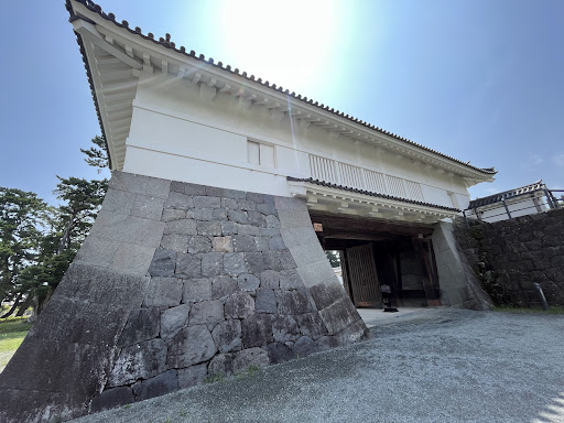 現在の銅門は、昭和58年から行われた発掘調査や古写真、絵図などを参考に、平成9年に復元されたもので、石垣による桝形、内仕切門及び櫓門を組み合わせた桝形門と呼ばれる形式で、本来の工法で復元されているものです。