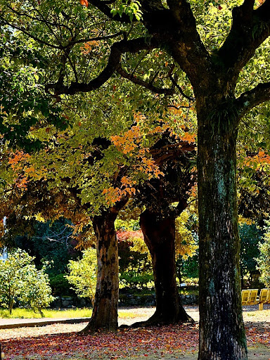 駐車場から歩いて行くと、大きな木々が多数お出迎えしてくれ、立派な庭園へと導いていかれます。