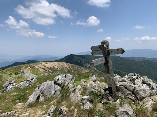 æšé«1040mãéä»å±±ã®åæ±ã«äœçœ®ããç·©ããäžè§éåã®ããŒã¯ãåšèŸºã®ããŒã¯ãšåãã360Â°èŠæž¡ã屿ã¯è¯å¥œã§ããé äžã«ã¯äžæ¬ã®æšèãšçŸããæ¯è²ã ããããªãã