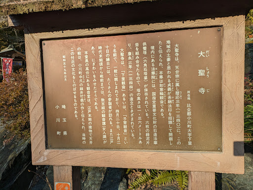Read more大聖寺の開山は希融、開基は平(源)貞義と伝えられ、暦応3年(1340)に創建されたと言われています。 大聖寺には、国の重要文化財「石造法華経供養塔」と、「板碑」が保存されています。前者はその形式から「六面幢」あるいは「六角塔婆」とも呼ばれています。 駐車場から立派な門を潜り歩いて行くと急な階段があり、階段を登ると社殿があり ます。社殿には撫で仏があり、体の悪い所を撫でると良いようです。 ...