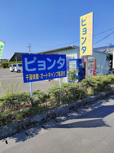 物産販売所「ピョンタ」(10月〜金土日のみ営業)の看板から駐車場に入れます。(土日の受付はここで)