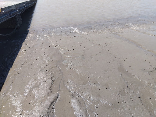 Read more令和5年8月祝日訪問。有明海や八代海にしか生息していないムツゴロウが見学できる場所ということで、海に面した広~い干潟を想像していたのですが、実際は川の河口です。日時によるのかもしれませんが、私が訪問した時は川岸から奥行12~13mくらいが干潟で期待していたよりコンパクト。けれどその分、かなりの密度でムツゴロウとシオマネキがウジャウジャいました。事前に調べたら繁殖期の6月~7月は縄張り争いで活発に跳ね回っているそうですが、この時期は日向ぼっこをしながらのんびりニョロニョロと這いまわっていて、これはこれで平和そうでカワイイ。いつまでも見ていられそうでした。 駐車場から干潟へはトレードマーク(?)のムツゴロウ型公衆トイレの後方にある階段を登って土手を超え、しばらく行った桟橋のあたりなのですが、特に表示が無くて、売店にいた係員の方がパトロールのついでに案内してくださいました。もうちょっと分かりやすい...
