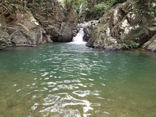 Read moreThe hike is maybe 15 minutes to 20 minutes if you hoof it. You walk most of the way through the stream, over some slippery mildewy rocks and at times hold on to rope to hoist yourself up. If you are a BA mofo, no problem! If you have young kids, have balance issues, etc take your time, no footing is ever for certain unless dry ground. Leave the flip flops at home and wear shoes you dont mind getting wet. Likewise, I know your dog is your everything but there is at least one tough section to climb that i saw terrify a dog who then proceded to poop in a swimming area... so yeah please dont bring your dog it didnt seem much fun for them. Check weather, do not go after a heavy rain or if storm is expected, the trail is in the water so you gonna have a bad...