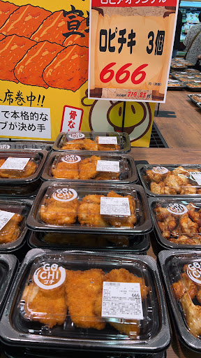 結構楽しんでいるが、最近テレビでよく見るロピア特集との落差がすごくてがっかり。 ピザ600円が岡崎では999円なのからテンションダウン。これならチェーン店のピザの持ち帰り半額が視野に入る。 寿司バイキングもないし、大きなおにぎりも火曜日しかなく、土日休みフルタイムでは夕方にはもうないだろうから買えない。日替わりなどにせず毎日置けるだけの惣菜スペースを用意してほしい。他の人も言っているが、そこにドラッグストアはいらないので、その分惣菜売場を拡大してほしい。 夕方に行くと惣菜は補充がなくスカスカ、閉店10分前になっても大量にあったロピチキは1円も安くなっていなかったので、翌日以降も使い回されていないか不安になった。 パンも夕方にはスカスカ。もはや何が売っているのかもわからない。そういえば惣菜のサンドイッチはこの店にはないのか?