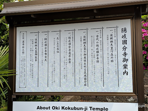 このお寺も、741年(平13年)に出された聖武天皇からの「国分寺建立の詔」により全国につくられた国分寺の一つです。 鎌倉時代末頃には、1332年(元弘2年)の元弘の変に敗れた後醍醐天皇が隠岐に流され、隠岐国分寺を行在所としたといわれています。 一方、天皇の行在所説としては西ノ島の黒木御所も知られることから、実際の行在所の所在ははっきりとしていないそうです。