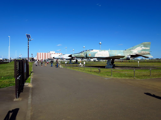 Read more茨城空港の真横にある戦闘機を展示してある広場です。 引き下がりの航空機は古びて···なんて微塵もなくピカピカの機体で驚きです。 1973年に国内ライセンス取得で製造された尾白鷲のF-4EJ改要撃戦闘機 RF-4EJ戦術偵察機は1991年にF-4EJに偵察機器を装備し偵察機へ転用されたものだそうです。ウッドペッカーの尾翼が目を引きます。 360℃展示しているのが嬉しいです。 現役を引退した機体をボランティア·協賛の企業がリペイントして2022年4月21日に完成とあります。クラウドファンディングで足場も設置され、ファンからの戦闘機愛が伝わります。 両機ともマッハ2.2の音速で東京-大阪(500km)を11分で移動出来る トップガンマーベリックはマッハ10k 約12秒で地球一周の距離を移動。機体から脱出して生還したトム・クルーズは無茶な設定なのがよくわかります😔
