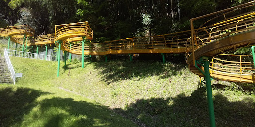 上部にある滑り台は6歳以上なら単独滑走可能。それよりも小さなお子さんの場合、親御さんがしっかりと抱っこして、タンデム滑りすれば、十分楽しめるだろう。具体的に言うと、例えば2歳児を、お母さんがギュッと抱っこして滑る事も出来る。
