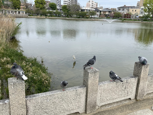 Read more大阪市住吉区の北部、静かなる高級住宅街の中に位置し、早朝のランニングから昼間の散歩に夕涼みの他、春の花見や夏の蝉取りに夜の線香花火、秋の虫達の音楽会など、冬以外は人や自然のイベントに事欠かない、普段は静かな池及び池の畔にある遊歩道で繋がれた公園や広場を指す。 池の周りにある遊歩道は路面が土だが一部は車椅子や自転車が楽に通れるよう舗装されており、雨の日など路面がぬかるんでいるときは舗装面側に通りすがりが集まりやすい。この遊歩道で繋がれた公園と広場は計3つあり、真北と南西に公園施設が、真東に広場がある。 路面と池の畔との間には柵が立ててあるが、高さは成人男性の腰くらいまでしかないので、その気になれば子供でも乗り越えられる点に注意。なので子供連れは公園のうち池から離れた箇所を利用したほうが良いだろう。 池と言うだけあってビオトープ化はかなり手を入れられており、畔の植生は手を入れられる前(※20年以上前。幼い頃近辺に住んでいたのでその記憶を参照している)と比較するとそれなりに増えたものの、人以外で公園を利用する動物たちはさほど種類が増えておらず、ハトとスズメが朝から日の入り前までいるのと、池を泳ぐのはフナやカメが主でたまにカモなどが水面で羽を休める程度。それでも眺めていると気分が癒やされるので、ここの動物たちは周りの方々の小さなアイドルなのかもしれない。 また、池を南北に二分するよう真ん中の小島に両岸から橋が架けられており、小島にはちょっとした回廊と「南無妙法蓮華経」のヒゲ題目が刻まれた古池竜王を祀る石碑が建てられている。小島の横にさらなる小島があって今は鳥類の憩いの場になっているが、もしかするとそれは遥か昔、この池に住んでいたとされる竜王の、胴の一部であった…と思われていたのかもしれない。 なお、小島に架かる橋はどちらも欄干(橋の手すりのこと)が成人男性の太ももから膝の位置と極めて低く、幅が狭いことも合わせると自転車同士のすれ違い時に欄干を跳び超えて池に落下しうる危険があるため、小島への自転車での乗り...