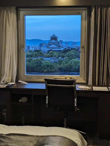 Read moreThe hotel overlooks the Osaka Castle, and offers tremendous view; obviously convenient walking distance if you're visiting the castle. It's quite old and dated, and seems to have been quite a tourist hotel in its day. There was Engrish translation throughout hotel surprisingly. Our stay in early December had very few guests; maybe it's the slow season. Not a good choice for business travelers. Probably the smallest hotel room I've ever been in; dorm rooms and cruise ship bathrooms are bigger. There's no wireless internet and no gym (but a run around the castle grounds is highly suggested!). Still use keys for doors. Dated and plain furnishings make it OK for an overnight stay, and you couldn't beat the price: $85 that included a breakfast. Confirm a non-smoking room at check-in (they gave me a smoking room that was changed immediately). Be prepared to pre-pay for your entire stay when you check in! (Osaka seems do things a little differently than other areas of Japan). In summary, they try hard. It's cheap and convenient if visiting the castle overnight; but if you're a business traveler, find...