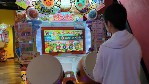 Pretty decent 3-story arcade close to Umeda station. Bottom floor is mostly cranes and kids games. Second is bigger games like Taiko no Tsujin, Mario Kart, House of the Dead, Jurassic Park, air hockey, basketball, etc. They have 6 Taiko games setup: 4 on Japanese, 1 English, 1 Chinese. Top floor is split between sitting single / double player games and gatchapon machines. MaiMai and other games are also up there. There are various vending machines throughout. When the air hockey machine was having problems, I noticed one of the employees and he fixed it for me and made sure it worked while we played....