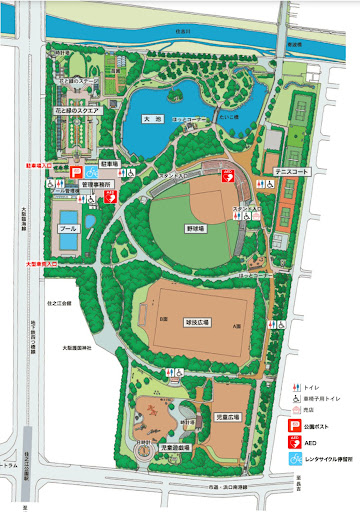 Read more(English follows) 公園の北側には大きな池があり、そこに野鳥が集まっているようです。付近の芝生でアオサギが日向ぼっこしており、人に慣れているの逃げずに近くで写真撮影できました。公園内には野球場や庭園もあり、トイレも三ヶ所確認できました。とてものんびりとした時間を過ごせる場所です。 There is a large pond on the north side of the park where wild birds seem to gather. A great blue heron was sunning itself on the grass near the pond, and I was able to take a close-up photo of it without it running away, as it is accustomed to people. There is a baseball field, a garden, and three restrooms in the park. It is a very relaxing place...
