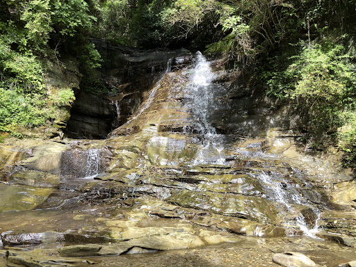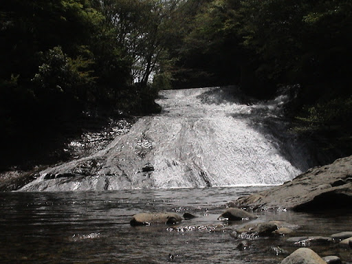 遊歩道を歩いていくと突然左手の奥のほうに滝が見えます。特に看板があるわけではなさそうで、はじめは何という滝なのかわからないかもしれません。粟又の滝と比べるとこじんまりとしているため、名前のついている滝なのか不安になります。googleマップで現地点を検索してズームアップすると滝の名前が出てきますのでそれで確認してみてください。 滝の下の方まで行くことはできますが、地面の石がとても滑りやすく危険です。左側に滝つぼのようなものがあり...