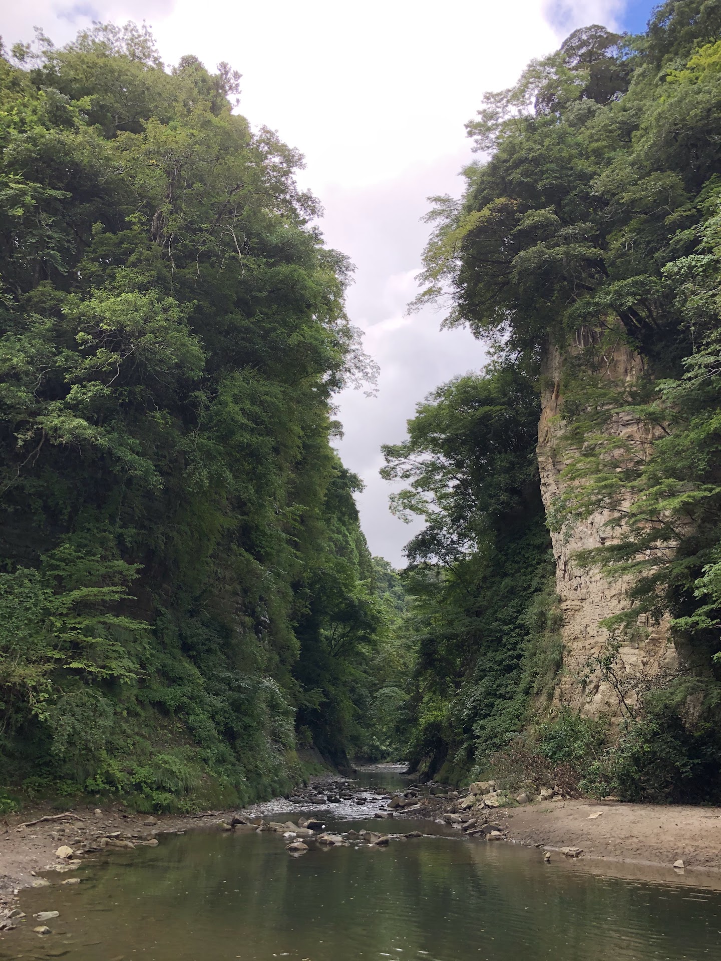 私は写真撮影のために川岸まで 降りようしたけど簡易的に