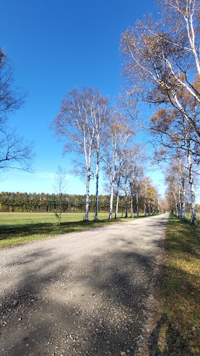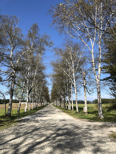 十勝牧場入口から、直線で約1.3km続く白樺並木で、 音更町の「美林」に指定されています。 今から約70年前、牧場職員の手で植樹されたそうです。
