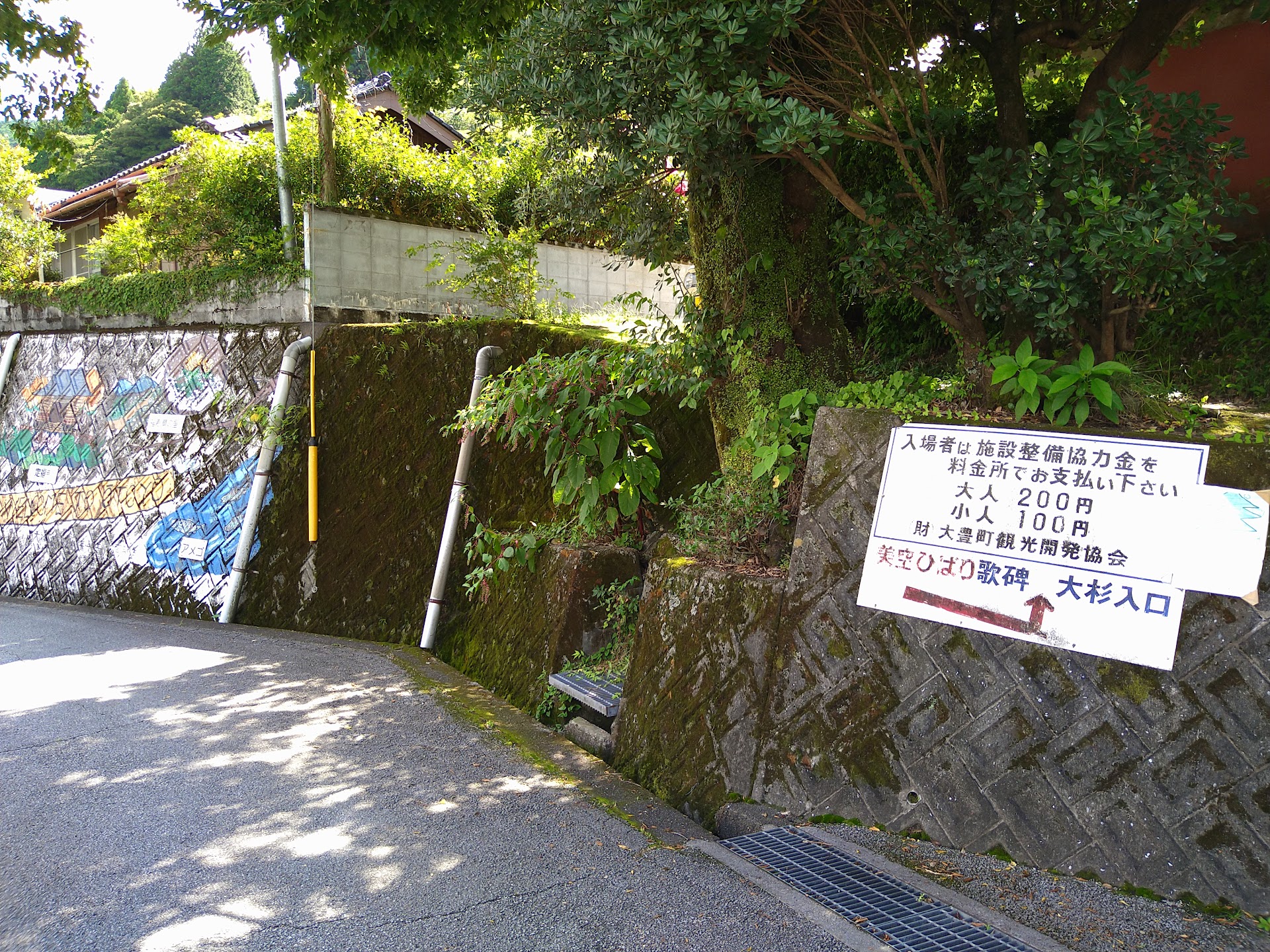2022/07/28 昔からその存在はテレビや雑誌で見聞きしていたものの、 同じ県内、そのうち行けるやろ、という気持ちで、昨年やっと訪問🌲🚘⛩ そして昨日、 徳島での用事のため下道をノンビリ走っていて、ふと思い出し😮 龍馬パスポートスタンプ対象なので、 せっかくならば道の駅大杉と、ダブルでいけるやん👍‼️ 料金所近くに駐車場はあります。 地元の小学生たちが描いた絵や看板もあちこちにあり、 町をあげてこの大杉や神社を守っていこうといしている姿を感じますね🙂 2回目の訪問で 改めて大杉の大きさを間近で体感🌲 ご縁を頂いてこちらに立ち寄らせてもらったお礼と、 何事もなく旅を進めていける事に、 ワタシを守護してくれる全ての存在に感謝の念を捧げて帰りました🙏 料金所で支払いしてる時に、 階段上がった神社敷地内で、なんか喋り声が聞こえる👂 地元の人がおるんかなあ? けっこう大きい声で話してるなあ😮と思っていたら、 スピーカーで大杉の説明をしているものでした📢🌳 七福神様もお祀りしていて、その横にちょっと小さめの龍馬さんもおります。 よそ者のワタシは近くの駐車場までピュイーッと上がってきましたが🚘 地元の方たち向け?よく分かりませんが、 国道32号線から階段で上がってこれるルートもありました。 料金所のところを、さらにもう少し歩くと 美空ひばりさんの歌碑があります。 【川の流れのように】など、 ボタンを押すと けっこうなボリュームで再生されます💦 で、しかも ワンフレーズとかじゃなく、 ガッツリ演奏されるので🤣 なにも前情報なく、そこに行ってボタン⏹押したもんやから ビックリして焦って🤣 もう、途中で止めようと思って、 再度同じボタンを押してみたんですわ、とりあえず⏹ そしたら 初めからまた演奏スタートしてしまい😂‼️ 焦る私。 周りに響き渡るイントロ♫ 途中で止まらないので ボタン押す時は気をつけて😂 車イスの訪問客の方用にスロープもあります。 真夏はもちろん虫はたくさん飛んでると思いますよ🦟 そんなにすごく長居されることはないでしょうが、 虫対策はしていきましょうね😊