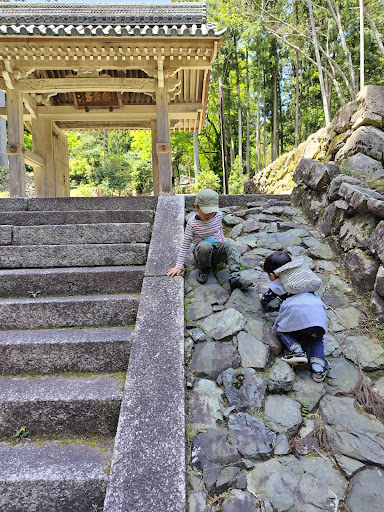 神社仏閣というよりも、広大な敷地で何百年も前に修行僧たちが研鑽されていた史跡…という感じです。 長く、しっかりとした石段が続き、そこを抜けると大きな門があらわれ、突然道がひらけます。 比叡山の横川へ続く途にあり、このあたりも比叡山延暦寺の関係といいますか一部なのでしょうけれど、ドライブウェイやケーブルからいかず、普通に山道を運転&お散歩しているとたどり着きます。 輝くような新緑が宝石のようで とかげの青い尻尾はキラキラと輝き ながーいヘビに子どもたちと感動し(笑) 石垣をワッセワッセ登って ※2歳でも全身使えば余裕でいけます たどり着いた先は、苔のフッカフカ史跡?!なんだろう?建物は焼失したせいか、もとはかなり広そうだったのに、今では広いお庭があります。 自然豊かで、静かで、お邪魔したのはゴールデンウィーク真っ最中のはずなのに 人っ子一人おりません。 子どもたちは、泥沼にハマり、かけっこして、ちょうちょを追い回して転がって、きのこを見つけ… 天国かな?と思いました。 素晴らしい空気感です。 滋賀というか、湖西ってやっぱり、明るくてからりとした感じがするんですよね 聖地になったのも、こういう空気感...