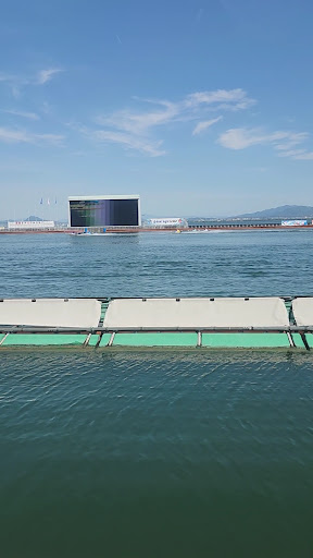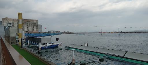 We saw this on the map and decided to check it out. It ended up being a really cool experience, although a bit confusing at first since everything was in Japanese. So, full disclosure, we didn't end up betting, since that was just a little bit too complicated for us (although there seemed to be a good tutorial on their website), but just watching the boat races were fun. The races run all day, presumably, because we showed up in the early afternoon and were there for a couple hours and got to see a few races. There are two races every hour, one at 20 after, and one at 50 after. In between those times, the racers can come out and practice, I guess, and kind of demonstrate their abilities, that way you can chose who to bet on. It's 100¥ to enter (there's just a little coin slot at the entrance, and when you drop your coin in, the gate opens up), and some food trucks and beer vendors inside. You can sit inside or outside, but the top...