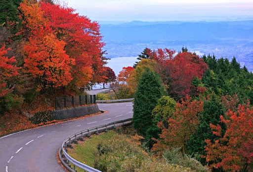 奥比叡ドライブウェイは叡山延暦寺を参詣するための道路です! 全長11.82kmの有料道路です! 琵琶湖大橋から近江八幡市、沖島まで琵琶湖の北湖の景色が綺麗! ・行先は延暦寺西塔の中心となる堂へとつながる。