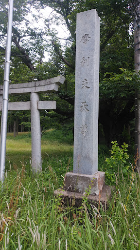 南側に鳥居がありそこが入口です。摩利支天塚古墳以外の,琵琶塚古墳の資料館に車を停めて、近くの道路を南下、左廻りで行くのがいいです。