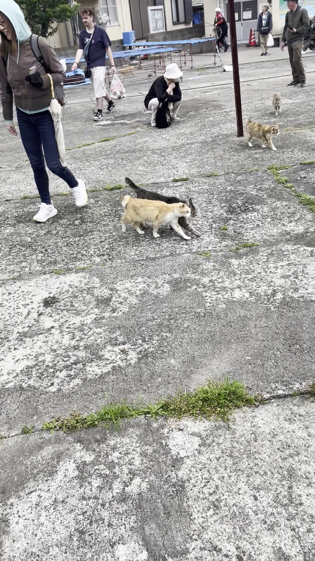 Read moreThis cat island is not what we expected, either in terms of the cats, or the island itself. It’s reached via a ferry journey from Nagahama. If you go on the 14:30 ferry and come back on the 16:00 ferry you will have time to explore most of what is accessible on the island. The ferry arrives at a pretty harbour in what appears to be a paradise island. There will be cats at the harbour. Make sure to bring food – that’s why they have obligingly come to meet you. There were not as many cats as we thought there would be. Maybe a few dozen at most. They mostly seemed ok, although some of them looked as if they might be a bit sick. Some are quite thin. After meeting the cats, we wanted to look around the island. We walked up to the temple near the harbour, which is clearly maintained. Other than that, most buildings and pathways are closed off or derelict. We had read that the island has only a small human population and we didn’t really meet anyone who wasn’t a visitor. It seems that most locals have abandoned the island, leaving a tiny community of just half a dozen older folk, living around the harbour. It must once have been a thriving island though. There are some big buildings, like a municipal block on the hill above the harbour, completely overgrown and broken down. It’s beautiful, in a way, to see how nature has taken over. It is full of insects and spiders. Most notable are the sea slaters, woodlouse-type insects that occupy every roadway and building. As you walk, they scatter and then, if you stand still, they crawl back. They must live for a long time because some are tiny and some are up to about 2 inches long. The most shocking thing about the island is the plastic. If you walk along the harbour wall and look down between the rocks, or if you go onto the beach, there is a plastic littered everywhere. Little bits and big bits and all sorts of things. It is an interesting place to visit, but it feels neglected. Fun fact: Aoshima, literally means, Blue Island, maybe for how blue the sea is here. (Forgive me if I have got that Japanese...