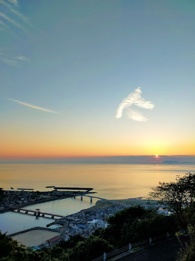 長浜方面の眺望が素晴らしいです。詳しくは他の方の画像などを参考にしてくださいね。 ただし、反対側には眺望はありません、コンクリート造りのしっかりした展望台です。 アクセスは展望台のかなり東側国道から(看板あり)大洲市長浜晴海ふれあいパークへ曲がりすぐに右折して国道を渡る陸橋から山へ向かいます。 グーグルで見ても地図はわかりにくいですが、道なりで迷うことも無いと思います。 10分ほどで到着、休日夕方でしたが貸し切り〜数台程度の穴場だと思います。 私は佐田岬のフェリーまでの時間つぶしで行きましたが国道から多少走るので40分ほどの道草になります。 あまり時間のない方は厳しいかも。 展望台脇には放射線の線量計があり原発を意識するいい機会かもしれません。 長浜大橋がバッチリ...