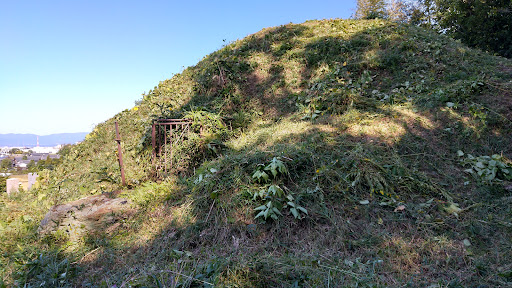 墓地の中にある古墳、墳丘部分の草刈りは行われているが石室は鍵が掛かっているのと草刈りが行われておらず内部は...