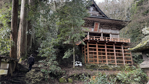 This is an amazing location that has a ruin like feel as you enter the temple grounds, flanked by aged granite slabs and old cedar trees. As you walk into the first cedars flanked pathway you will come up into a curious temple hidden behind shrubs. Walking up stairs on the left and admiring the platform (similar to Kiyomizudera) that it's built on you will notice that the temple on top is really aged with its wood but still standing firm.