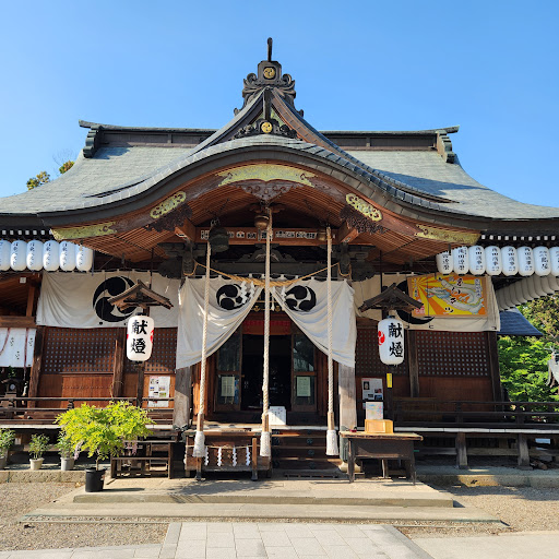 Read more市街地の丘の上にある大きな神社。近くに市役所あり。下まで降りようとしたが途中でやめた。朱色の第1鳥居、石板参道。境内はスギ、マツ、サクラなどの巨木。右へ曲り石段を登る。広場に出る。綺麗な石板参道。燈篭、提灯に灯りがついている。右に神輿殿、左に末社:と高良神社、新山神社あり。奥に青黒屋根の立派な社殿。右に昭和天皇・皇后行幸記念植樹、悠仁親王殿下の印「高野槇」。左に社務所、若き宮司さん夫妻・子供2人・犬が幸せそうにくつろいでいる。仲良きことは美しきかな。夫婦杉あり。社殿と社務所を渡り廊下でつないである。社殿の提灯にも明かりが灯っている。社殿右奥に稲荷神社、赤い3基の鳥居。水仙咲く。サクラは2分咲き。少し低くなり駐車場を兼ねた広場に、鐘楼、忠魂碑、2基の石碑あり。 ☆祭神 主祭神 ・誉田別命(ほんだわけのみこと) 配祀神 ・大山祇...