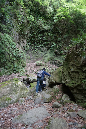 吊り橋を渡り大滝入口と書かれた看板へ と進む。 ロープをつたって下に降りると そこからが別世界への始まりだ。