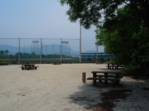 Read more(コロナ前、キャンプ場としての下見です)体育館の事務所で受付してもらいます。キャンプサイトは駐車場から遠く離れた、細長い砂地(写真3枚目の見取り図、Fの上)。二輪のみ徐行して乗入可。サイトはサッカー場・野球場・プールにに囲まれ、朝晩は地元民の散歩道にもなっているので治安面でも連泊OK。休日の日中は賑やかでしょうけど・・・。更に、キャンプ場利用者は21:30まで体育館のシャワーを無料で使っていいそうです。さすが西条市...