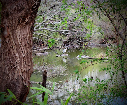 Read moreバードウォッチャーの聖地としても名高い彩湖公園。 展示されたボードによると、アオサギ(『君たちはどう生きるか』でも登場した、あの鳥)も来るとのこと。 まさか、羽を広げると1m60cmにもなる巨大な鳥が、こんな首都圏にいるわけないよな、と思いながら散歩していると、それがなんと、ちゃんといるのである。 浦和実業グラウンド横、意識的に以前の沼沢環境を残している場所がある。 ここにアオサギくんは、一人(一羽)静かに佇んでいた。 この自然に近い林野は、ヒトにとっても棲みやすいようで、1年前に訪れた際には、確かに一人の老婆がこの奥から出てきた。 あの老婆は、ただのホームレスだったのか、それとも…??。