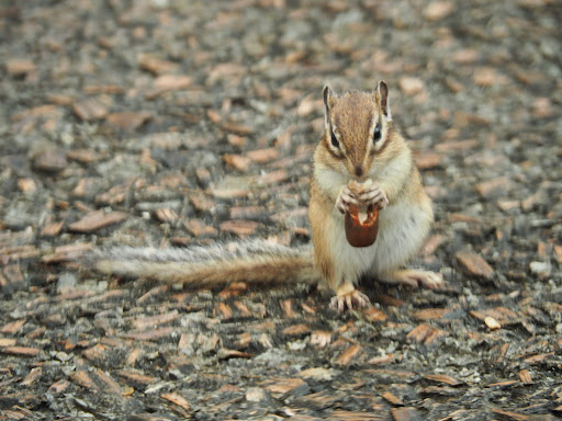 春は子育ての姿を、秋は冬眠前のドングリ集めで頬を膨らませている姿が見られます。冬場も冬眠をしないシマリスがいくらかいますのでシマリスが全く見られなくなる...