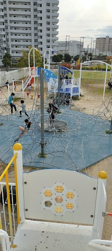 基本的な遊具は揃ってます。 3歳までの遊具があります。 ブランコにチェーンがあるので赤ちゃんでも乗れるのが良いです。 道路を挟んでバスケットコートと小さい子供向けの遊具があります。 トイレ、自販機はあります。 駐車場の料金がややこしかったので表示をちゃんと見てください。