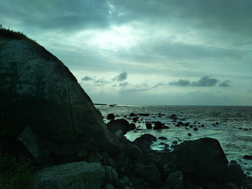 это лучшее что я видела в своей жизни. лучшее. через дорогу - парк с прудом в котором цветущие лотосы и карпы, хвойные деревья и вообще кайфово. а здесь - просто офигенный пейзаж. эти камни, море, птицы... у...