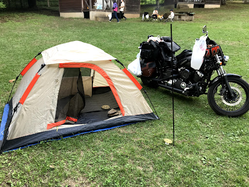 This is a free campground but reservations are required. To make reservations, call the list of telephone number, assuming that you can speak Japanese or ask a friend if you can't. There are some bungalows and rooms that perhaps you could reserve and those might require that you pay for them, but I don't know because I was content camping and that's free. When I got here there were no other campers because of inclement weather, which was nice because it was quiet. One of the buildings has a large covered porch so if you need to get out of the rain to take a break or cook dinner that's an excellent place. There are bathrooms with lights and running water that are relatively clean and don't smell at all. You can camp in several different areas, so walk around and choose the best site for you. The campground is on the side of a hill, so you need to search carefully for flat areas, but they...