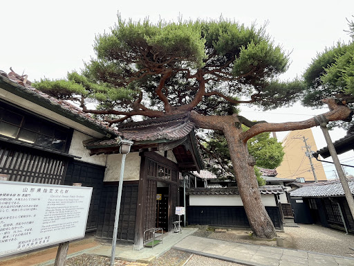 酒田本間家の三代目当主である本間光丘が、幕府巡検使本陣宿として庄内藩主酒井家に献上、その後拝領した、二千石格式の長屋門構えの武家屋敷です。 玄関先の臥龍の松は樹齢400年以上を重ね、悠々たる佇まいです。
