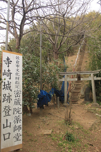 見晴らしは良いですが、城趾に共通する遺構が見当たりません。地元では寺崎城址と言っています。千葉宗家が酒々井町の本佐倉城へ移る途中に滞在した城とも伝えていますが、それにしても規模が小さすぎる様に思えます。又、目の前に氏神の妙見宮を併せ持つ千葉一族六崎氏の居城があり、わざわざ寺﨑に築城する必要が見当たりません。寺﨑の今は干拓され道路や街並みが見えますが、千葉宗家の時代には、印旛沼へ流入する鹿島川や高崎川が暴れる湿地帯であったはずです。 対岸に広い鹿島台(現佐倉城址)が見え、そばに千葉一族六崎氏の居城が有るのにわざわざ寺﨑に城を作るのは不自然すぎると思えます。ここは香取の海につながる印旛沼南端です、臼井城や鹿島城、本佐倉城などへ舟を使い移動が可能で見張り台的役割りの場所ならば、城址の遺構が無い事に説明がつくと思います。移転してきたお寺は有ったでしょうが、近世まで人が住んでいなかったらしいです。また、千葉宗家に関わる古文書に寺﨑と記載が有ったとも伝えられていますが、崩し文字で、はっきり寺﨑とは読めないみたいです。ここが正式に城址と認められていない理...