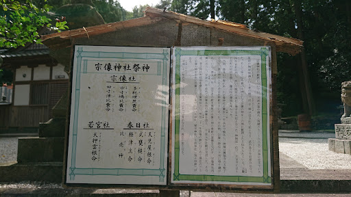 主祭神:多紀理毘売命、市寸嶋比売命、田寸津比売命。 『延喜式神名帳』に「三座」と記されており、いわゆる宗像三女神を祀る。