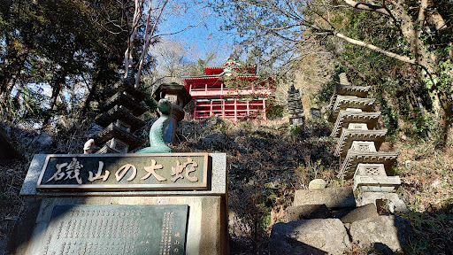 2024/1/15 東北への玄関口、栃木県佐野市北西部にある山水庭園の様な公園です。眺望の素晴らしい磯山弁財天や、石灰岩に濾された澄んだ水が湧き出す出流源弁天池が有名です。若干急登を要する散策路もあり、上部の東屋横の泥岩でできた巨石の上には、三峯神社と雷電神社の小さな石の祠が鎮座しています。更にその上部には道は有りませんが、巨岩の石窟や、山頂部にはお城の曲輪や堀切らしき跡が確認されます。人が滅多に入らない為か、本日はイノシシ親子に遭遇しました。山裾、弁天池の横には、水の神、子守の神をお祀りする湧釜(わっかま)神社や赤見温泉のホテル一乃舘さん等、宿屋が数件あります。錦鯉の釣り堀もある様です。神社右(東)横には公衆トイレと磯山公園駐車場(無料/4,5台のみ)があります。駐車場は他に2箇所あり「磯山弁財天駐車場」と「まちの駅...