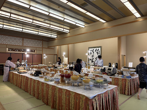 The hotel lobby/ground floor was spacious, well maintained and had a nice ambience. Likewise for dinner/breakfast areas and our room. Our room was on a high floor but faced roads and buildings instead of nature/trees which the rooms opposite ours offered and which I preferred. There was a CD player in the room and a stack of CDs of different genres. Player worked well. Our room package came with set dinner and buffet breakfast in a communal dining hall. Arrived for dinner at the time allocated and were led to a corner section next to an empty table so it was quite private and quiet. Most diners were in the yukatas provided by the hotel and on hindsight we should have worn ours too to blend in. I believe families with young children were seated in another area on the same floor. Food presentation was not as “exquisite” as kaiseki but still pleasant and the food was sumptuous and delicious. Staff were also prompt in clearing plates and serving dishes. Futons were made by the time we returned to our room after dinner. The futons were thick and comfy. Temperature in the room was adjustable. Buffet breakfast next morning was in same hall, not too crowded and the spread was good with both Japanese and western options. So well fed that we didn’t even try the complimentary snacks in our room or lobby.