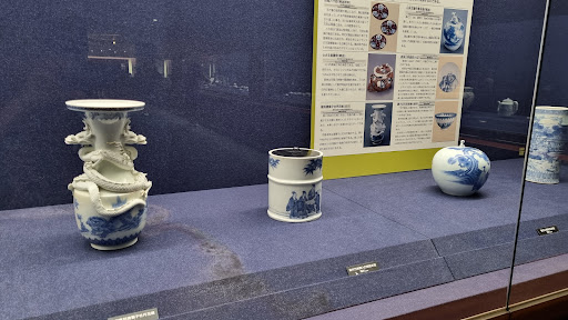 建物内部は大きく左右に分かれていて、玄関から向かって右は「江戸、明治、大正、昭和の各時代の名品が並ぶ美術館」、左は「現在の窯元の代表作品が集められた伝統産業会館」となっていました。最初は美術館の方から見学させていただきました。
