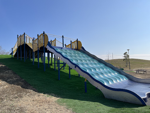 Not worth the trip for the kiddies. Has just two medium size slides and a small stone slide whose slick paint will be chipped and unusable in no time. Also, they tore up all the grass around the slides. It's just dirt -- not going to be fun anytime after a storm. However, it'll be a nice area...
