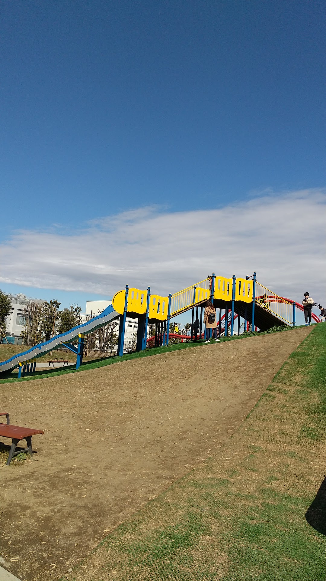 Read more2月25日(土)孫(6歳、4歳)娘と私4人で初めて遊びに。 この公園に巨大滑り台があることを知ったのは昨年暮れ 知人 警察官が~教えて貰っていた「大きな滑り台がある公園でお孫さんと遊びに行ったらきっと喜ぶよ」と。 🅿️無料。自販機、🚻完備 芝生もあり ボール等で遊べるスペース、荷物を置けるベンチが少しあり 只...