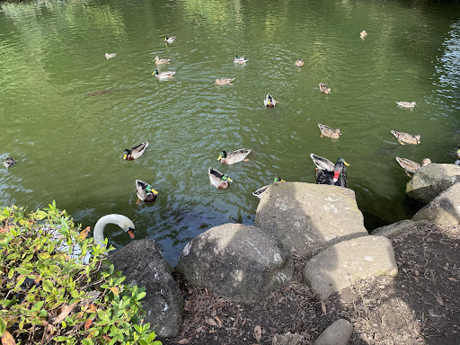 白鳥は1種類だけだと思っていたのですが、3種類くらいいて、この公園ではくちばしが赤と黒でおでこ辺りに膨らみが見えました。コブハクチョウです。同じ池には黒鳥とカモと鯉がいました。丹頂鶴にも会うことができました。残念ながら、優雅な求愛の舞ができる十分なスペースであるのか疑問でした。真鶴にも惹きつけられました。他にも幾種類かの鶴がいました。大きな鳥と比べるとカモ、アヒルは愛らしい。