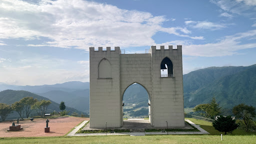 山奥にあるとても眺望のいい公園です。敷地内に岡山と兵庫の県境があります。標高は1000メーターを超えていて、晴れた日には下の集落が良く見えます。緑が豊かでピクニックなんかには最高だと思います。 駐車場から上に白く大きな建物が見えていて、その中に入って階段を登っても眺望が良いです。白い建物には大小2つのベルがあり、自分の手で鳴らすことができるようになってます。なかなか鳴らすのは大変だし、想像よりデカい音が響き渡りますよ。階段のある部屋に2回ベルを鳴らすなら200円の寄付が欲しいですって箱が置いてあります、是非寄付をしましょう。机とノートがあるので記録を残すこともできます。 下の管理棟的な建物にはトイレと結婚式場と閉鎖中の喫茶があります。建物の中は雑多な感じで、マキが500円から700円ぐらいで売っています。 アクセスは鳥取道の大原インターから車で15分ぐらい、公園の入り口までの国道は2車線の道路なので全然運転に苦労...